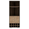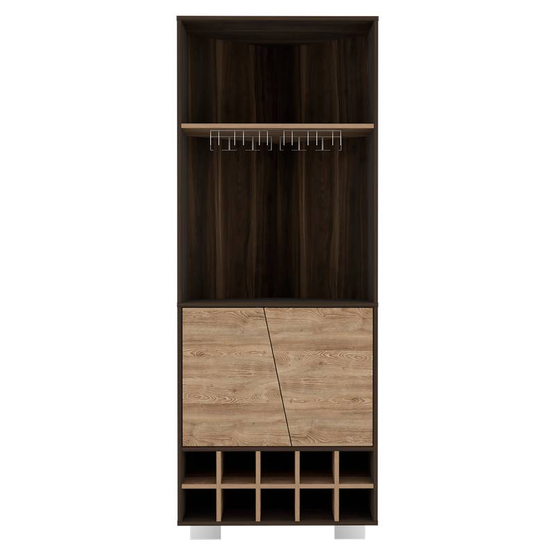 - Introducing our modern dining room wine cabinet, expertly crafted in Colombia and designed to elevate your space. This stylish dark brown cabinet features a ten-bottle wine rack and a spacious double-door cabinet with two interior shelves, providing ample storage for your favorite bottles and dining essentials.