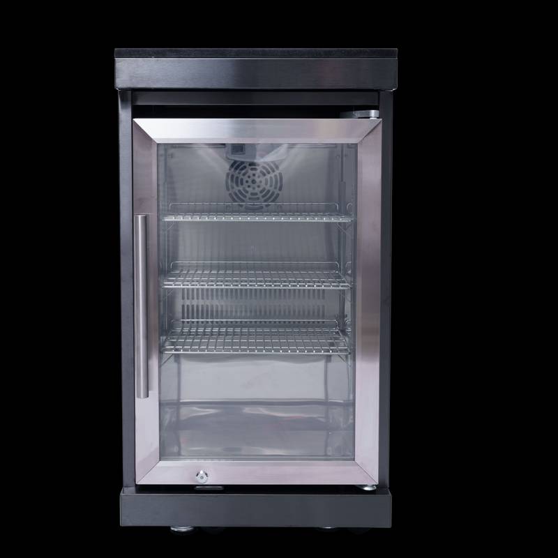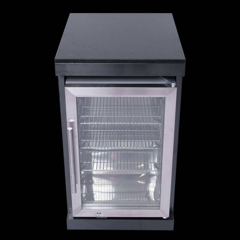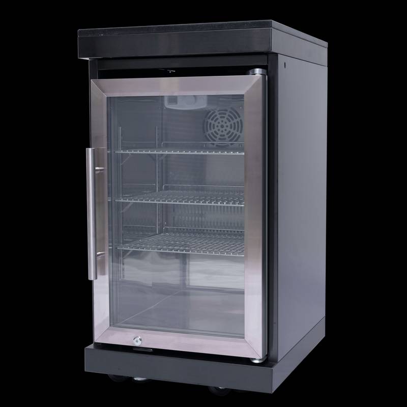 - Enhance your outdoor kitchen with the ONRUN outdoor-rated refrigerator, featuring a glass door, interior lighting, adjustable shelves, and a lockable door for security.