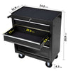 - Introducing our 4 Drawers Workshop Tool Trolley, designed for the serious DIYer and professional alike. Made from durable cold rolled steel, this sleek black cart features a sturdy powder-coated finish to withstand wear and tear. Measuring 24.25 x 12.99 x 29.33 inches and weighing in at 48.50 lbs, it's built for convenience and mobility.