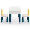 - The table includes a fun block board slide on one side and a spacious tabletop on the other, with 21 x 12.79 inches of internal storage to keep play areas tidy. It comes with four split storage boxes (6.88 x 4.21 inches) for additional organization. Plus, your kids will love the two mixed-color square chairs that are comfortable and stylish.