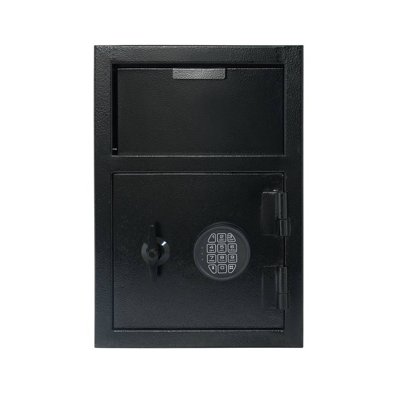 - Introducing our sleek black steel deposit slot safe—your reliable solution for securing cash and important documents.