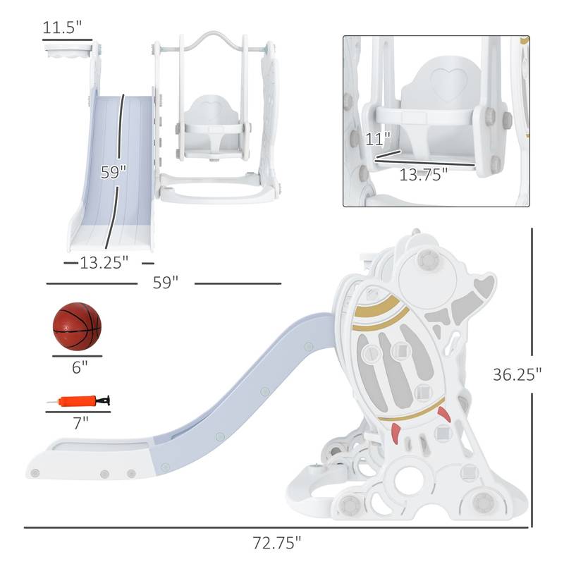 - Introducing the ultimate playtime companion for your little ones! Our 3-in-1 playground set combines a baby slide, indoor swing, and basketball hoop, promoting active play and fostering motor skills.
