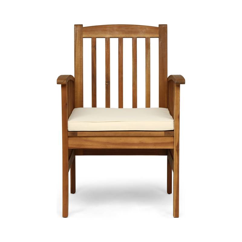 - Elevate your outdoor space with our stylish Acacia Wood Dining Chairs. Crafted from durable acacia wood, these chairs feature a modern design with a classic slat look, seamlessly blending with any decor. The weather-resistant finish ensures they withstand the elements, while the comfy, water-resistant cushions provide a relaxing spot for summer lounging. Easy to maintain, simply cover or store the cushions when not in use, and apply teak oil as needed for upkeep. Some assembly is required, but all tools and instructions are included. Perfect for your patio or backyard, these chairs are a charming addition to your outdoor dining experience.