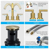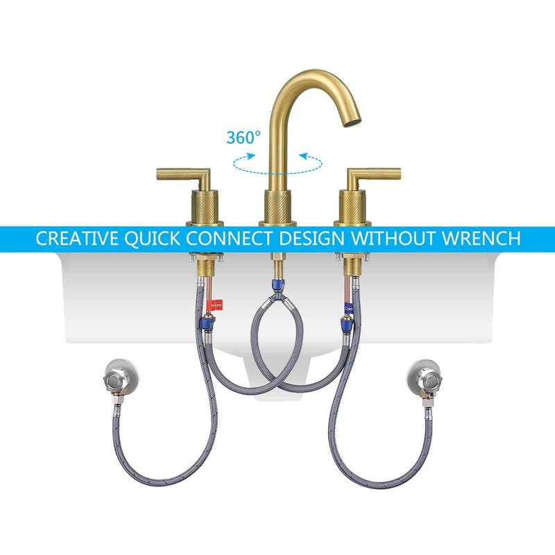 - Enjoy the convenience of dual handle levers and a high spout that rotates 360 degrees, allowing you to easily control water temperature and flow. Designed for widespread installations, it fits any distance between 6 to 16 inches and comes complete with a pop-up drain assembly and all necessary installation hardware — making it a breeze to set up on your own.