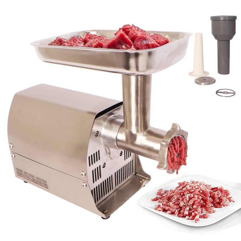- Experience quiet operation with a noise level of just 60 decibels, similar to a normal conversation, so you can grind meat without disruption. This versatile machine effortlessly handles various meats like pork, chicken, and beef, perfect for creating delicious meatballs, burgers, sausages, and even empanada fillings.