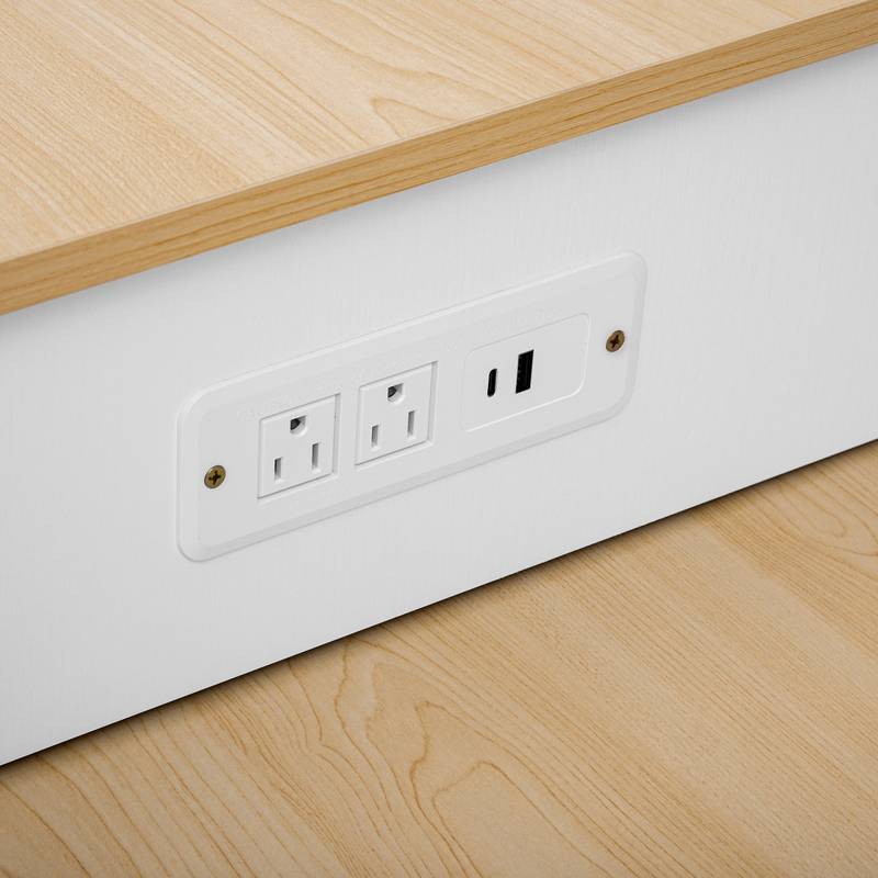 - - Built-in Charging Station: Stay connected with a sleek built-in outlet featuring two AC ports and a USB Type-C port, perfect for all your kitchen gadgets.
