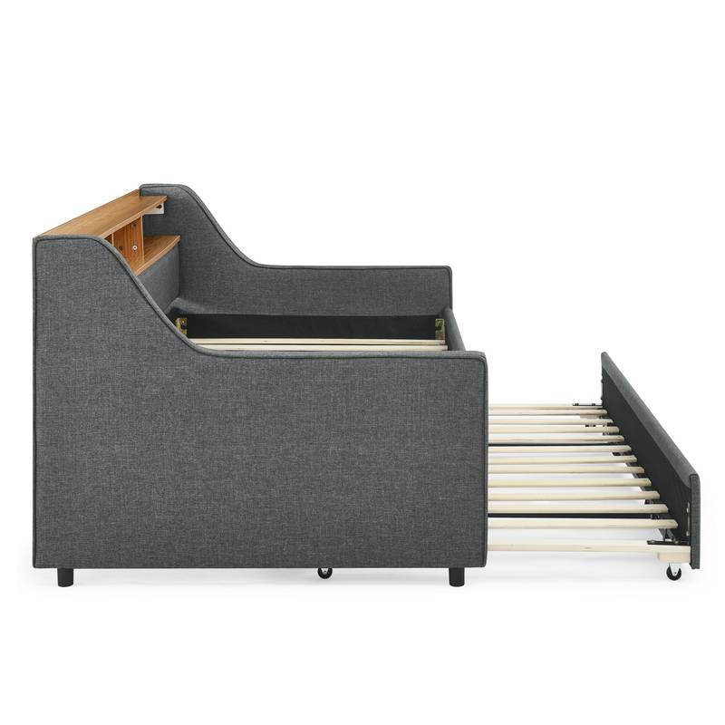 - Transform your bedroom with this stylish grey twin sofa bed that combines comfort and practicality. Upholstered in durable linen and featuring a supportive foam filler, this classic design fits seamlessly into any décor.