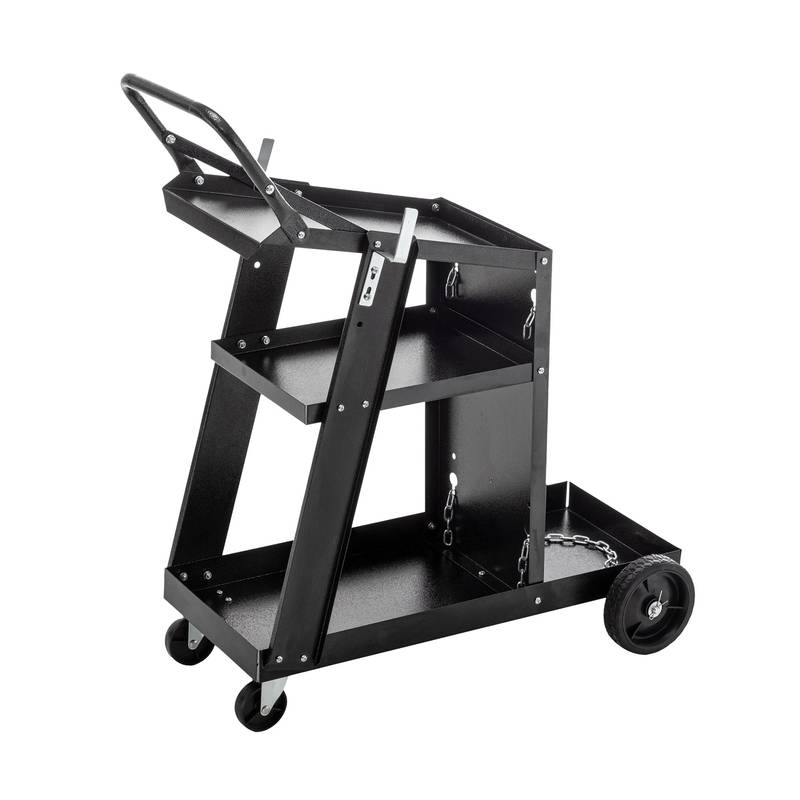 - Introducing our 3-Tier Welding Cart, designed with strength and convenience in mind. Crafted from high-quality steel and finished in sleek black, this cart stands up to heavy loads with a remarkable capacity of 400 lbs static and 370 lbs dynamic—ideal for all your welding tasks, including MIG, TIG, and plasma cutting.