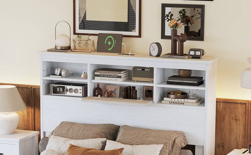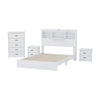 - Key features include a practical storage headboard with a shelf and USB charging port, along with generous storage options in the nightstands and a 5-drawer dresser. With plenty of space for books, blankets, and more, this set combines functionality with style, making it a perfect fit for any cozy bedroom. Assembly is required, but the stunning design and practical features make it well worth the effort. Embrace comfort and organization in your home with this beautiful bedroom set.
