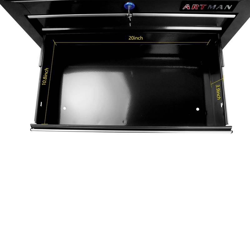 - Mobility is a breeze with four 4" casters—two with brakes for secure positioning. A convenient pull handle on one side enhances maneuverability, making it easy to transport your tools wherever you need them. Plus, the lockable design adds a layer of security for your valuable items.