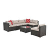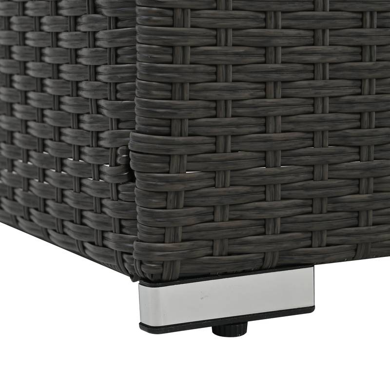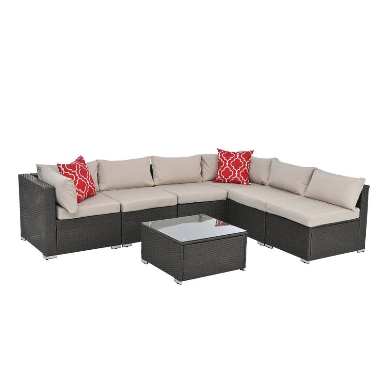 - Introducing our stylish Patio Furniture Set, perfect for outdoor gatherings! Crafted from durable PE rattan and a sturdy iron frame, this dark gray set seats up to six people comfortably. Enjoy upgraded relaxation with included cushions and two decorative throw pillows.