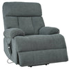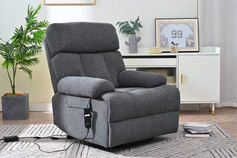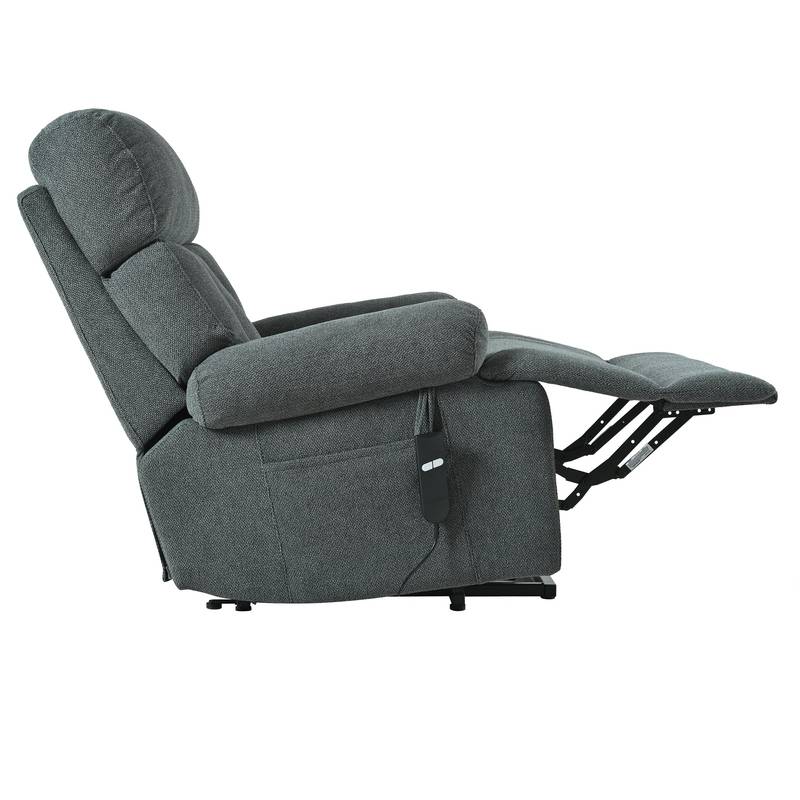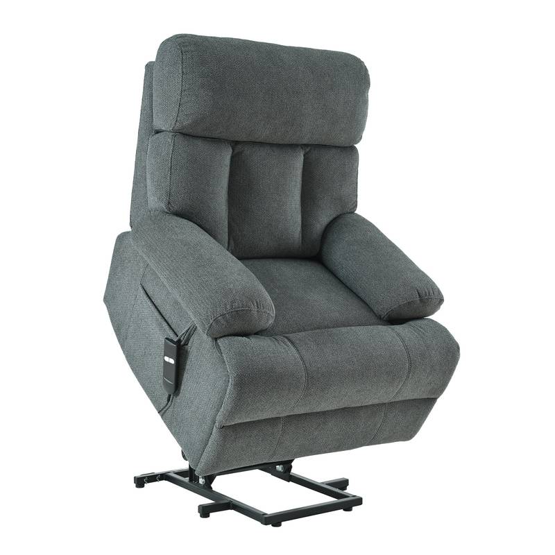 - Introducing our contemporary power lift recliner, designed for ultimate comfort and support. Crafted from durable fabric with a sleek dark gray finish, this stylish chair is perfect for any living space or cozy corner in your home.