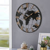 - Introducing the Large World Map Wall Clock, a stunning blend of functionality and artistry. Crafted from durable metal, this 36-inch clock features an eye-catching black and gold design, accented by elegant vintage Roman numerals and a sophisticated world map motif.
