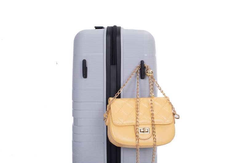 - Upgrade your travel experience with this stylish silver luggage set!