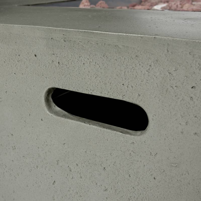 - Elevate your outdoor gatherings with our stunning light grey propane gas fire pit. Crafted from lightweight magnesium oxide, it boasts an impressive 50,000 BTU output, providing warmth and ambiance for your nights under the stars.