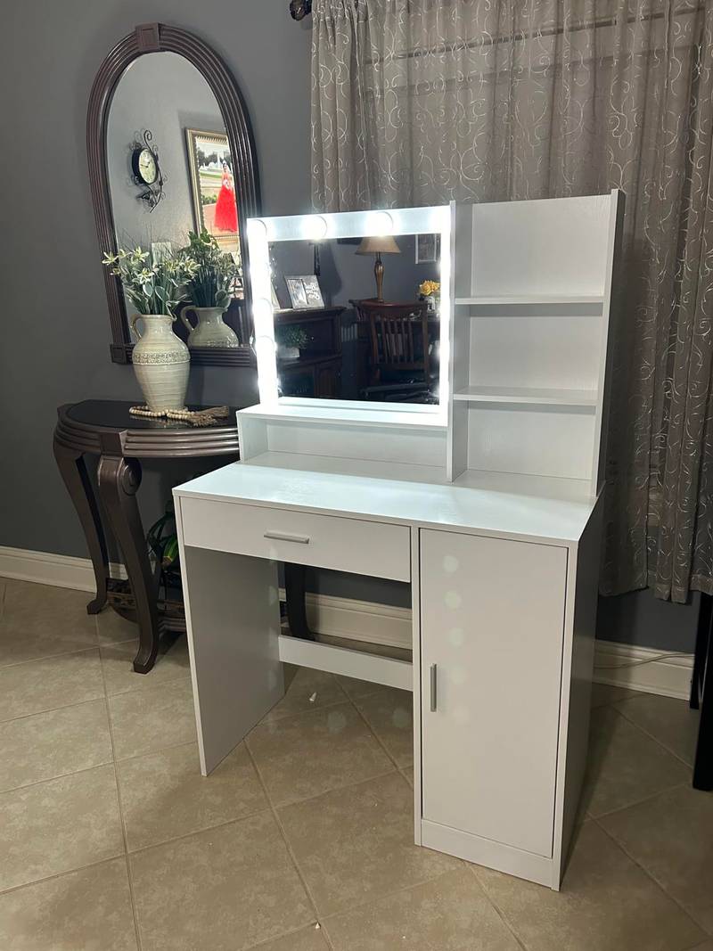 - - Ample Storage: Keep your beauty essentials organized with a spacious oversized drawer, three shelves, and three cabinets, bidding farewell to cluttered spaces.
