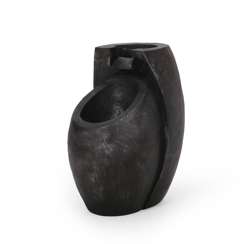 - Transform your outdoor space with this stunning gray garden fountain. Made from durable polyresin, it's designed to withstand the elements while offering an artistic modern touch.