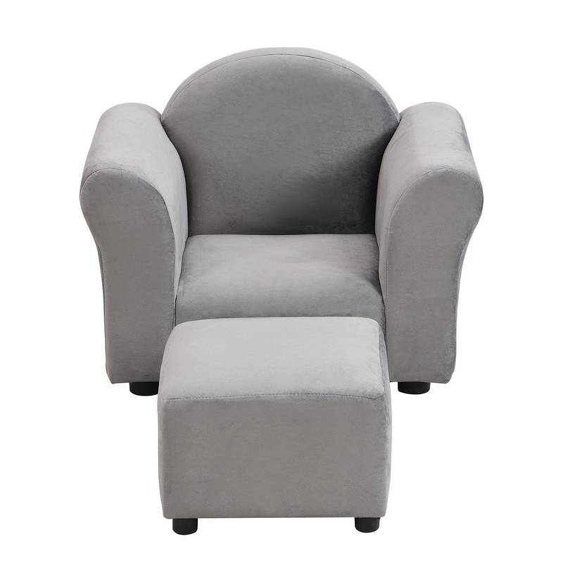 - Introducing our Dark Gray Velvet Toddler Chair, designed for durability and comfort. Built to last, this sturdy chair is perfect for enthusiastic play, made from high-quality materials that ensure years of reliable use. The ergonomic design promotes stability and a great experience for your little one. Assembly is quick and easy, so your child can start enjoying their new chair right away. Plus, a matching footstool adds extra relaxation. With a weight limit of 150 lbs, it’s great for growing kids.