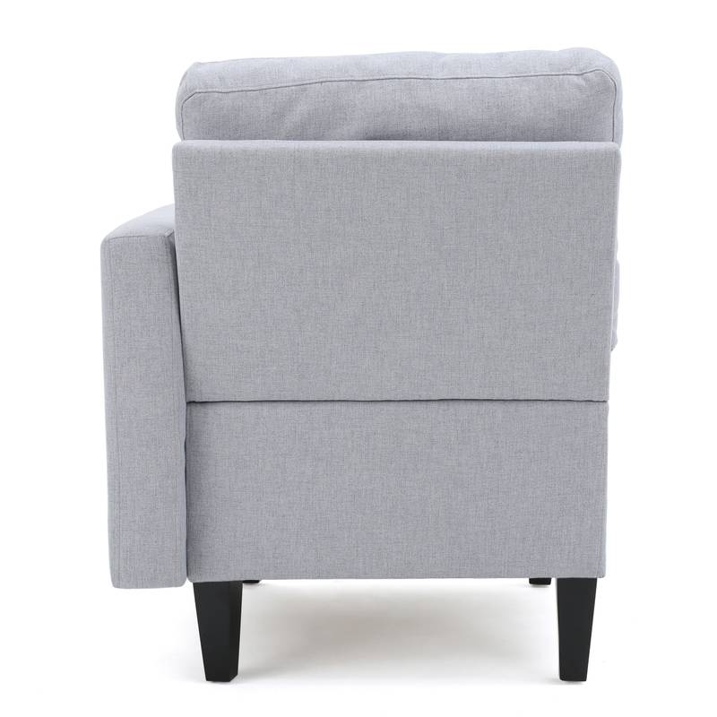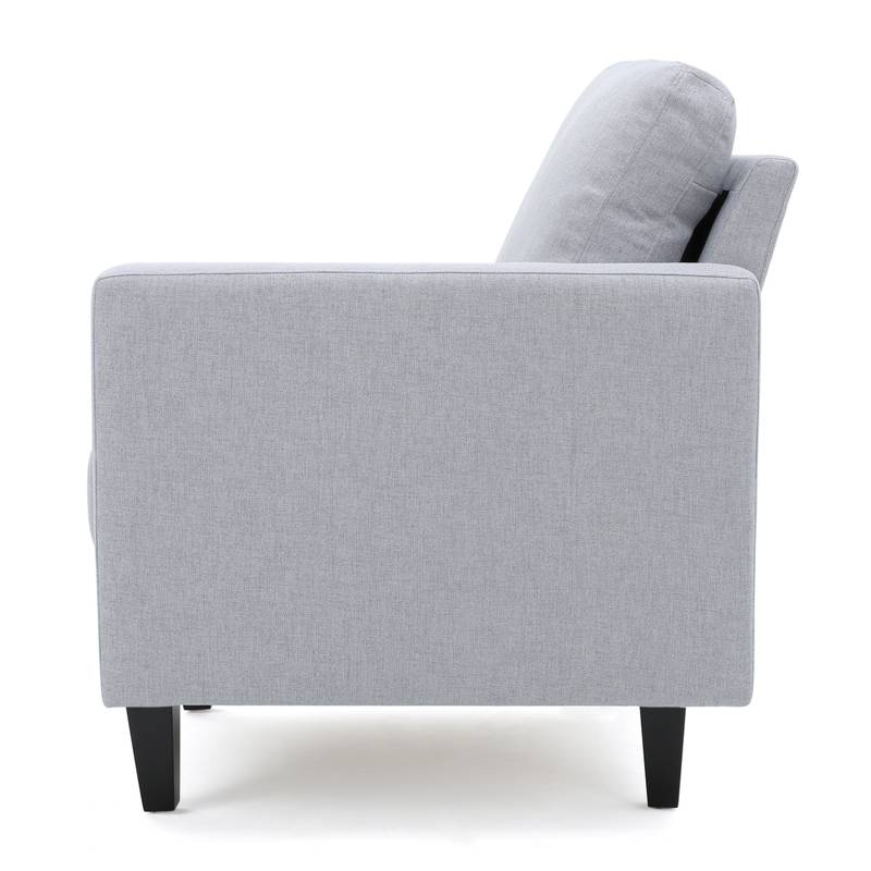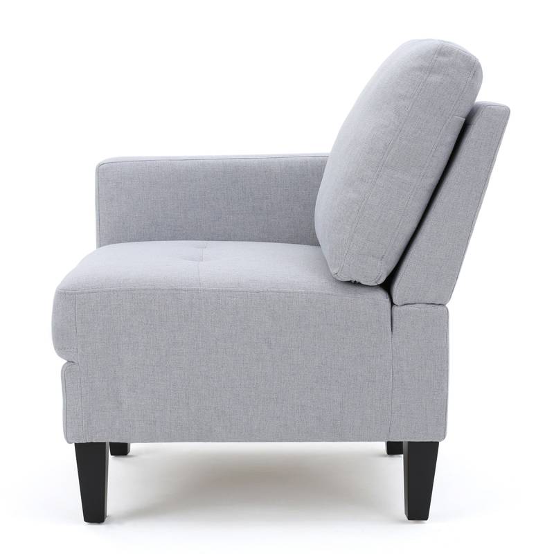- Introducing our stylish light grey single-seat fabric chair, perfect for any cozy corner of your home. With dimensions of 28.25 inches long, 32 inches wide, and 34.75 inches tall, this chair offers a compact yet comfortable seating option. Weighing just 31.31 pounds, it's easy to move and reposition as needed. Enjoy the perfect blend of modern design and comfort with this versatile chair that's ideal for relaxing or entertaining.