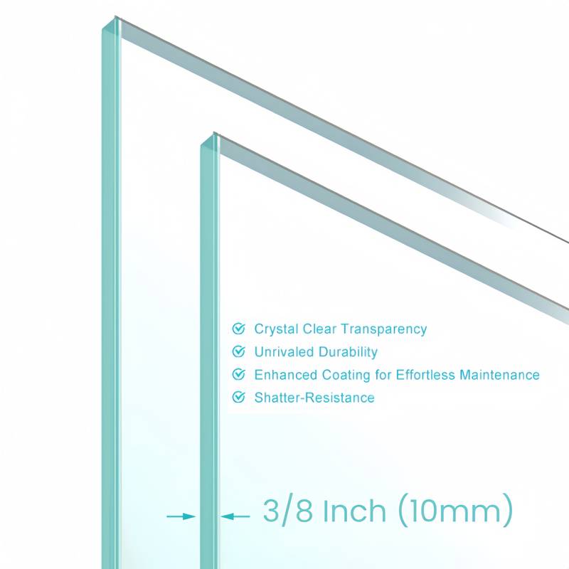 - - Thick, tempered glass (3/8 inches) that meets ANSI and CFR safety standards.