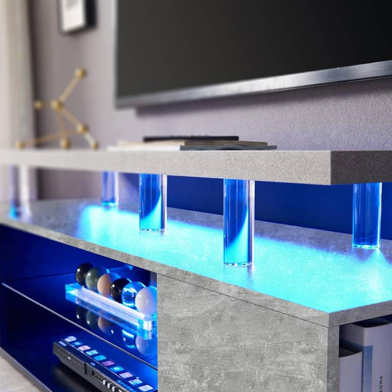 - Elevate your living space with our stylish TV console, designed with gamers and entertainment enthusiasts in mind. Made from engineered wood with a sleek gray finish, this versatile piece comfortably accommodates TVs up to 69 inches and combines modern American design with practical functionality.