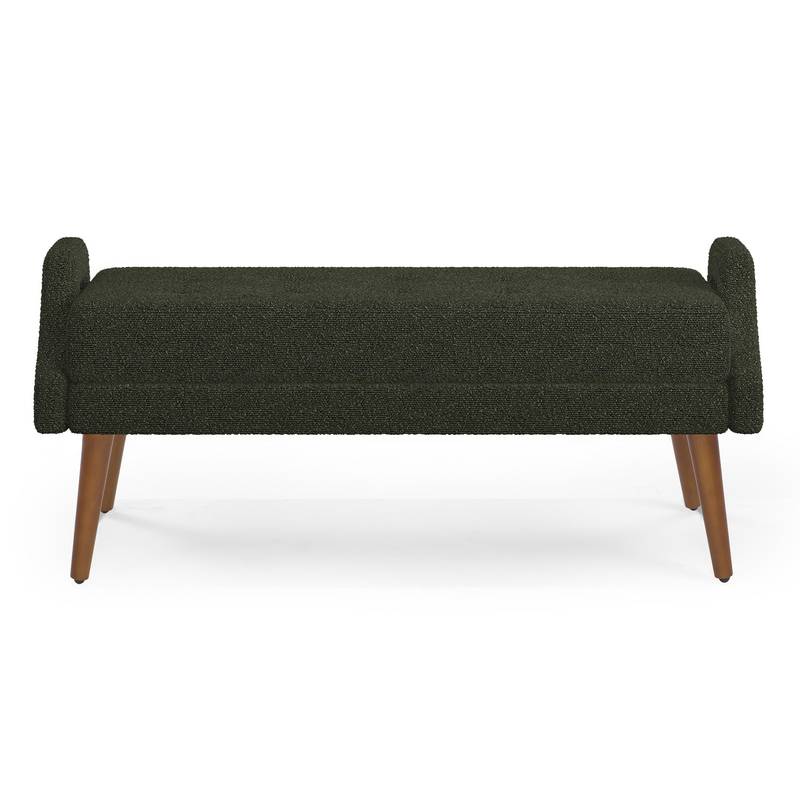 - Elevate your living space with our contemporary green foam bench. Designed to seamlessly blend into any modern home, its smooth lines and geometric shapes add a touch of elegance to your decor. The unique armrest design offers a fresh artistic flair, creating visual interest from multiple angles.