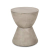 - Elevate your outdoor space with our chic light grey end table. Crafted from durable lightweight concrete, this contemporary piece features a smooth hourglass design that combines style and functionality. Measuring 15.25 inches wide, 15.25 inches deep, and 18 inches tall, it fits perfectly beside your seating area, ready to hold snacks or drinks without any assembly needed. With its elegant aesthetic and sturdy build, this side table will enhance any backyard or patio. Enjoy effortless style and practicality with this charming accent piece.