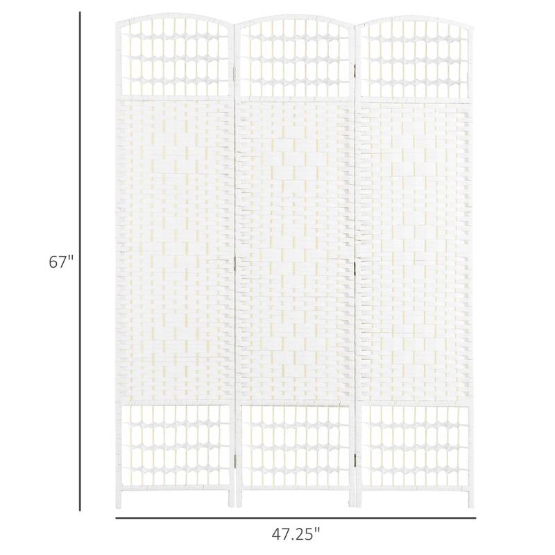 - Transform your space with our elegant 3-panel room divider! This stylish white partition seamlessly creates privacy in any area—perfect for large rooms or cozy nooks. Its hand-woven design, featuring a natural wood frame and charming bent wood arched top, adds a touch of sophistication to your living room, bedroom, or home office.