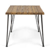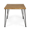 - Elevate your outdoor dining with our stylish teak dining table, designed for gatherings from brunch to summer barbecues. With dimensions of 32.5" x 32.5" x 29" and a sturdy weight of 27.56 lbs, it combines a beautiful acacia wood top with sleek powder-coated metal hairpin legs for a modern industrial look.