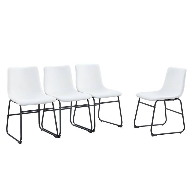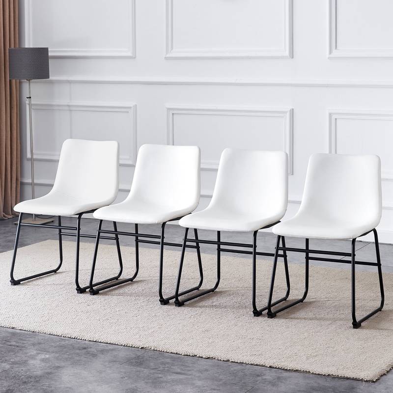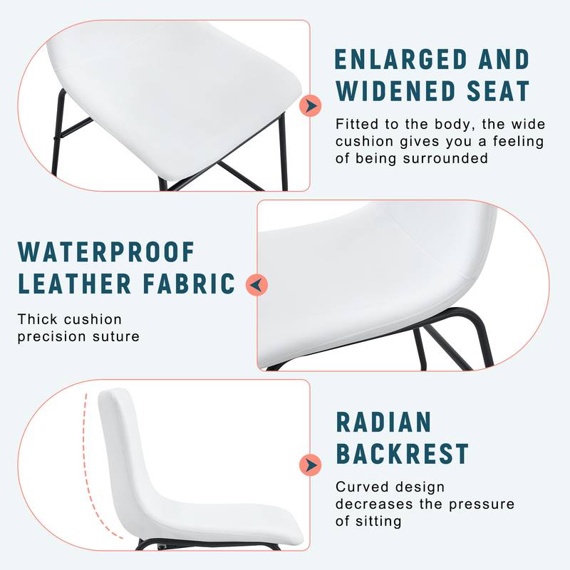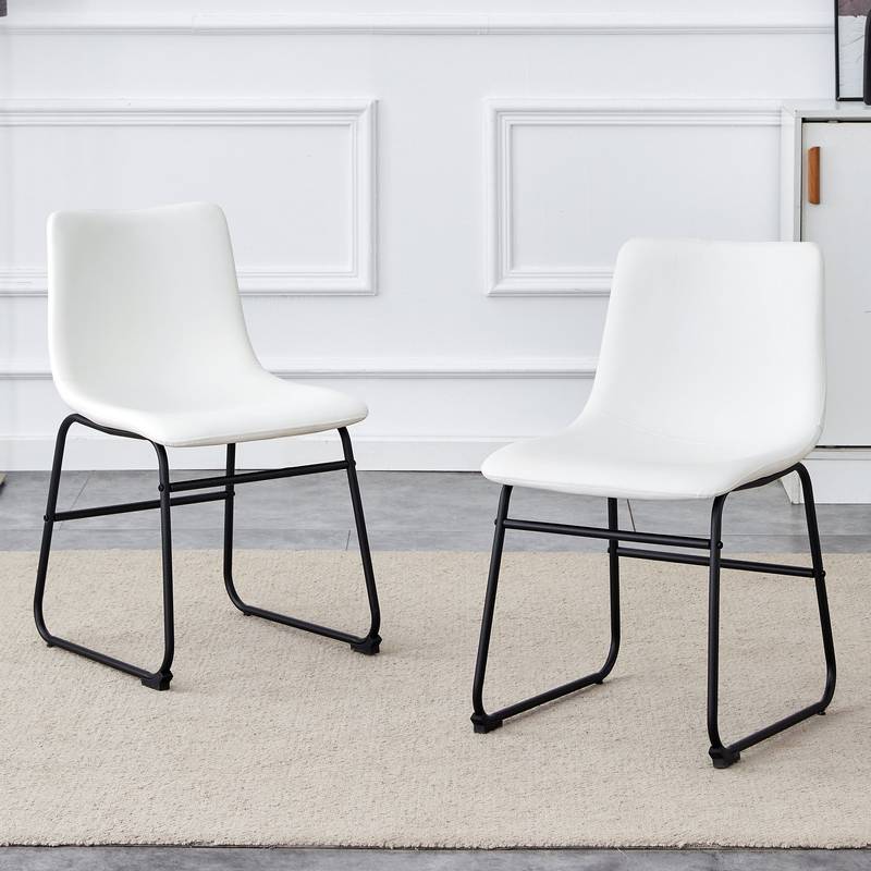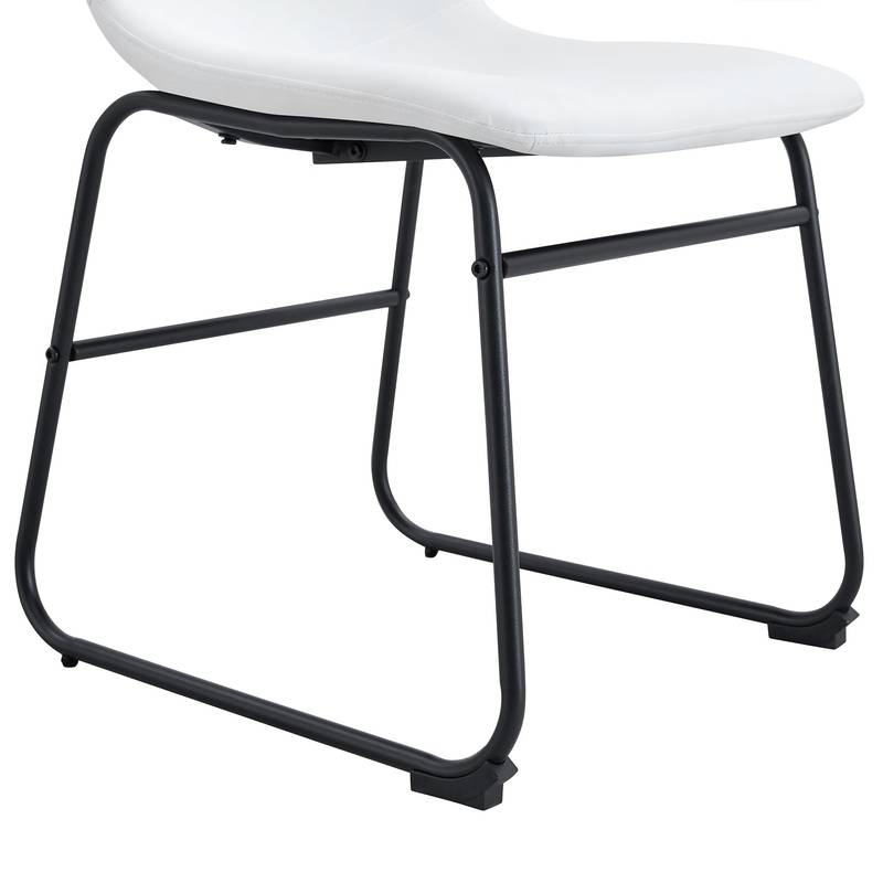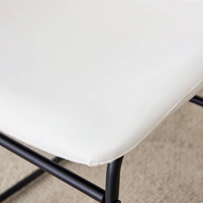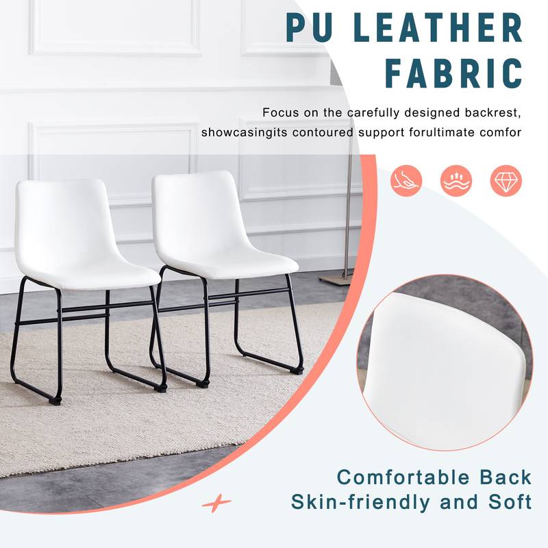 - Discover the perfect blend of style and comfort with this modern chair. Its sleek white PU leather seat lends a fresh, bright touch, complemented by a sturdy black metal frame. Designed with ergonomic curves, it provides excellent back support for a comfortable seating experience.