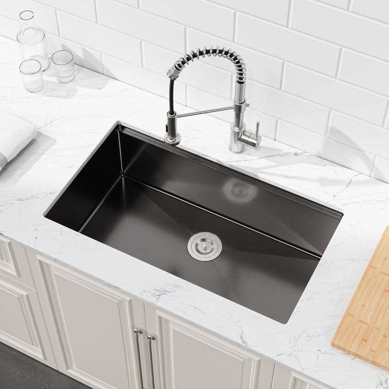 - Discover the perfect blend of style and functionality with our 33x19x10 inch stainless steel sink. Made with durable 304 stainless steel, this sleek black sink not only adds a touch of elegance to your kitchen but is also resistant to corrosion and scratches for lasting appeal.