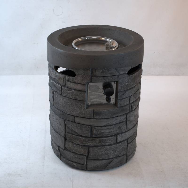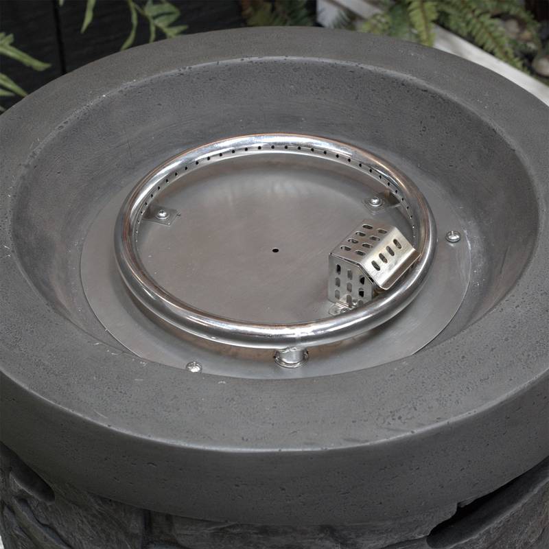 - Elevate your outdoor gatherings with this stylish stone gray gas fire pit. Crafted from durable magnesium oxide, it features a stunning American Art Deco design, bringing both aesthetics and functionality to your garden or patio.