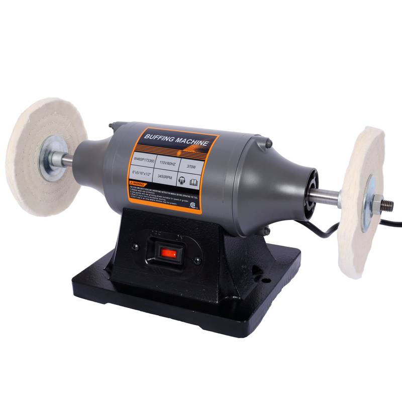 - Key features include a sturdy cast iron base that minimizes vibrations, ensuring stability during use and preventing damage to your workpieces. With a 6-inch buffing wheel diameter and a powerful 370w, half horsepower induction motor, you can achieve a smooth, refined finish on both metal and plastic parts.