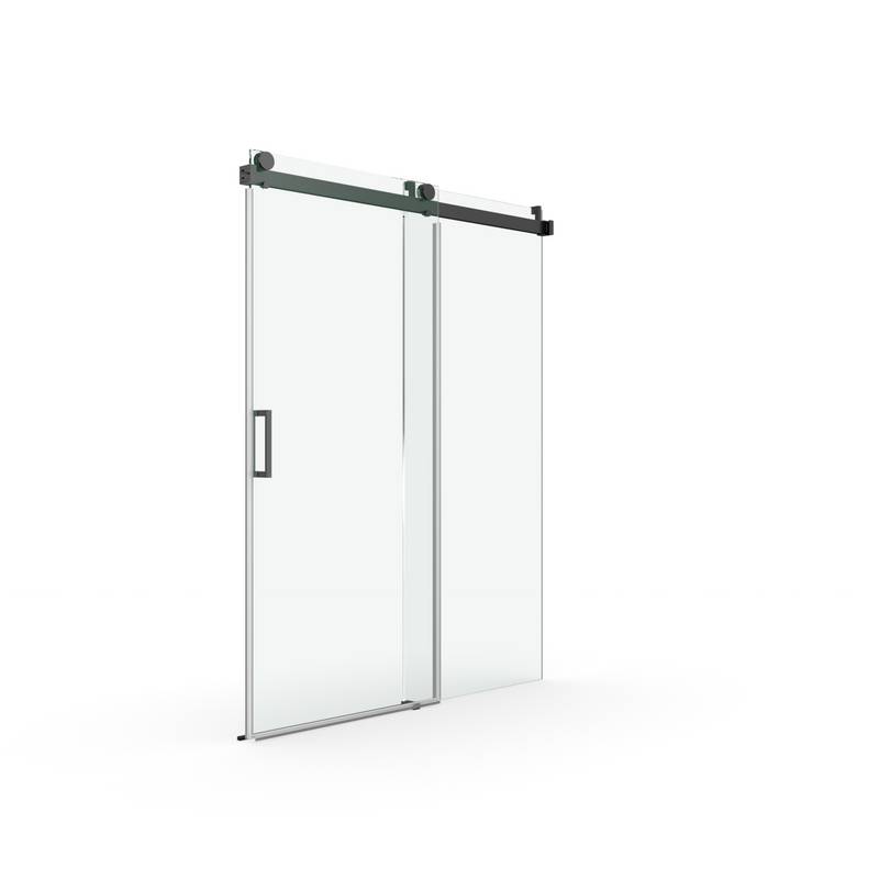- Constructed with 3/8-inch ANSI-certified tempered glass, it offers exceptional durability, resisting soap scum and scale while maintaining a stunning clarity. The reversible installation provides a modern, frameless look, fitting shower spaces between 68-72 inches wide with a height of 76 inches.