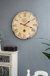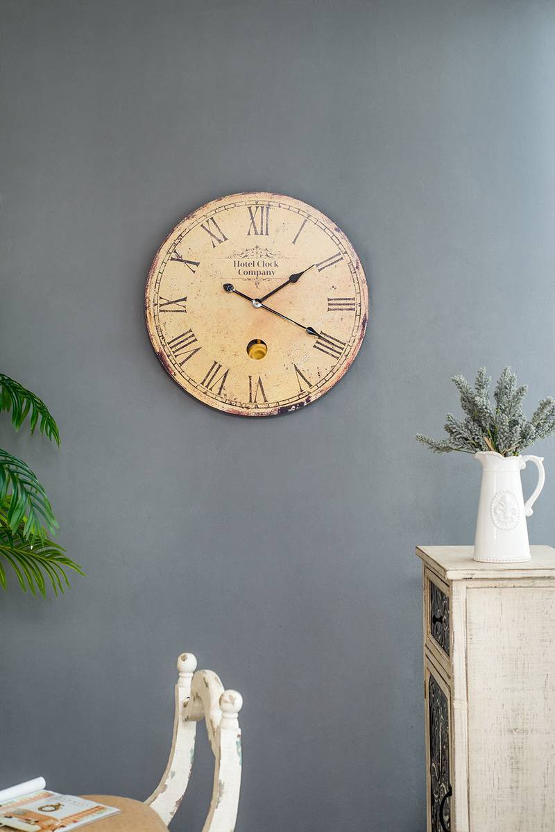 - Elevate your space with the Dubois large wall clock, a stylish piece inspired by the charm of Parisian cafes. Its rhythmic pendulum not only keeps time but adds a nostalgic touch to any room. Crafted from durable MDF, this clock measures 23 x 2.2 x 23 inches and weighs just 4.18 lbs. It requires one AA battery (not included) to keep you on schedule while enhancing your decor. Perfect for both home and office settings!