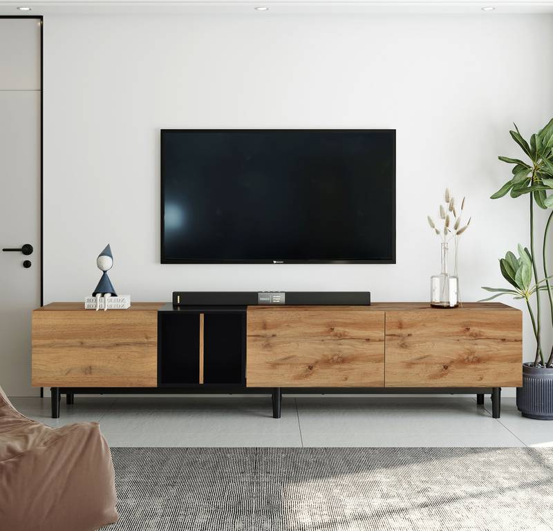 - Transform your entertainment area with this stylish and practical media console that blends seamlessly into your home.
