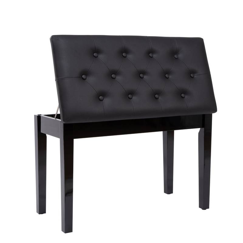 - Introducing our stylish black faux leather piano bench, designed for comfort and practicality.