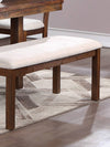 - Elevate your dining experience with this stylish mid-century modern bench. Crafted from solid wood with a natural brown finish, it blends seamlessly into any décor while adding a touch of sophistication. The soft upholstered seat ensures comfort for your family and guests, making mealtime even more enjoyable.