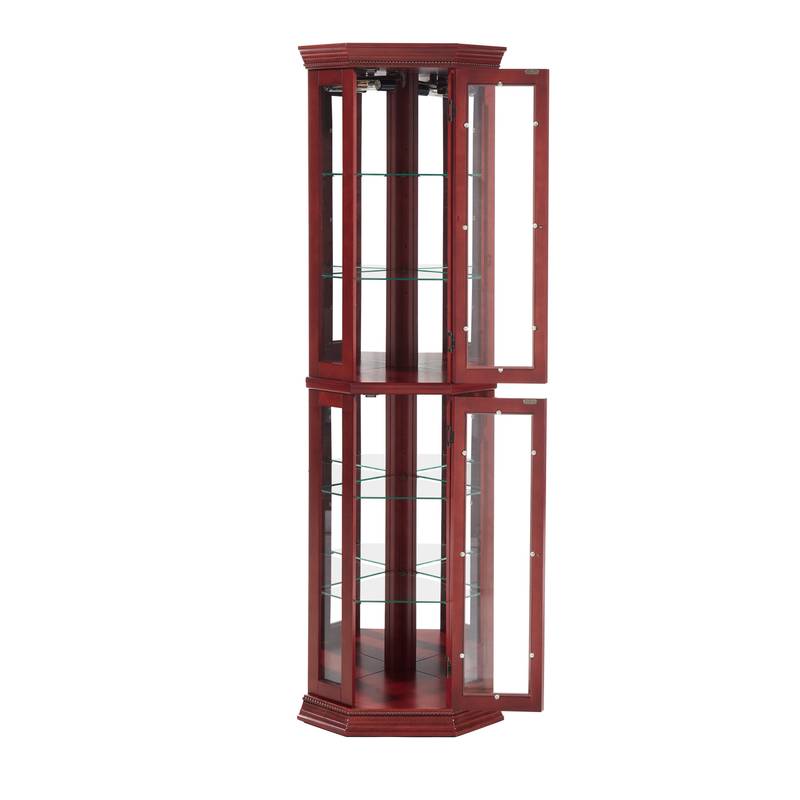 | Cabinet Storage | This corner curio cabinet has 4 adjustable tempered glass shelves, offering ample space for collectibles. |