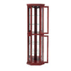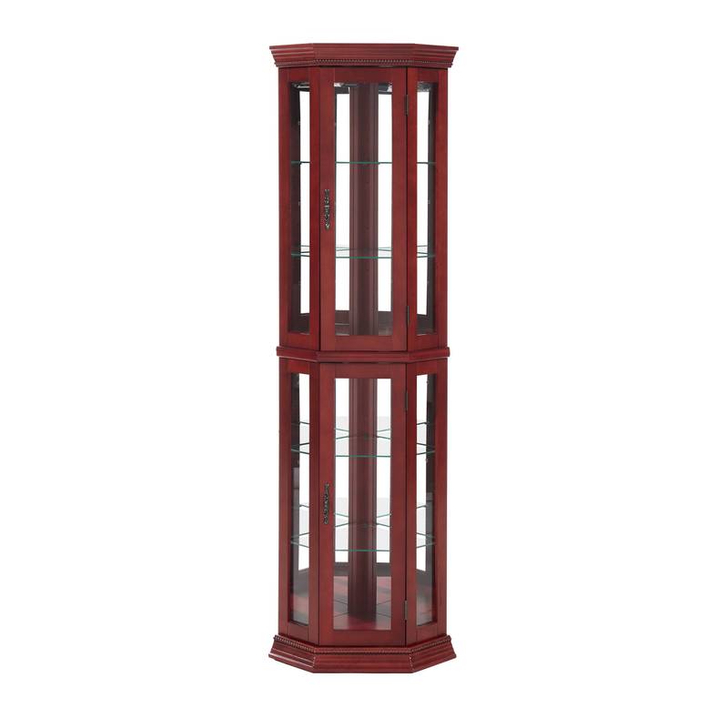 - Introducing the stunning Cherry Corner Curio Cabinet, a perfect blend of style and functionality for any home. With dimensions of 15.35" x 15.35" x 69.59", this elegant cabinet features a classical design that enhances any corner with its glass doors and chic metal handles.