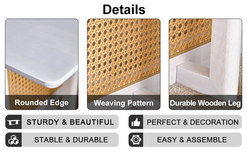 - - Crafted from durable solid wood with a chic imitation rattan detail.