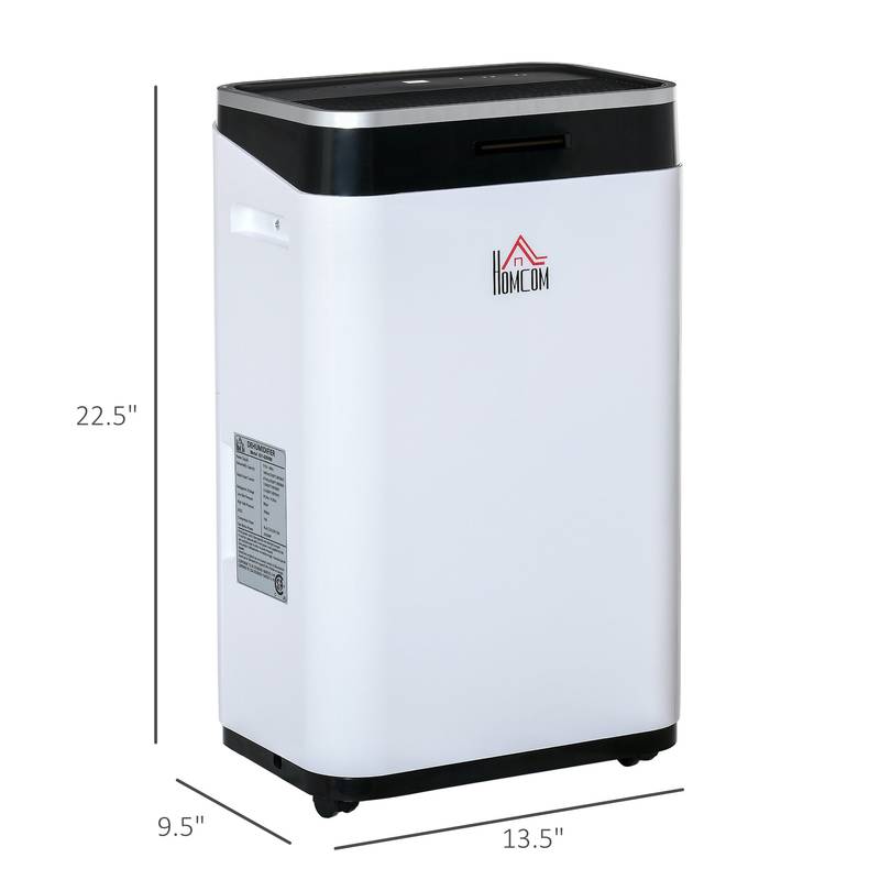 - Compact dimensions of 13.5" W x 9.5" D x 22.5" H make it a perfect fit for any space. Stay comfortable with this reliable dehumidifier!