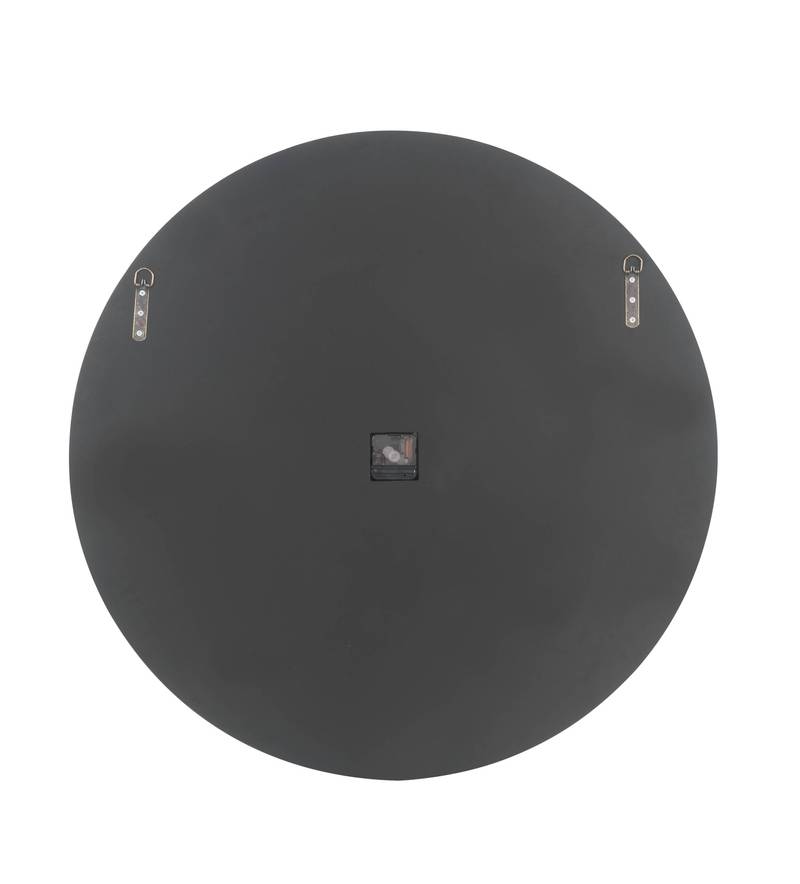 - Key highlights include a sleek round shape, a quiet quartz mechanism, and a chic black finish on the back. No assembly is required, making it an effortless addition to your home. Note that a single AA battery is needed but is not included. Transform your space with this elegant piece that effortlessly blends modern charm with timeless design.