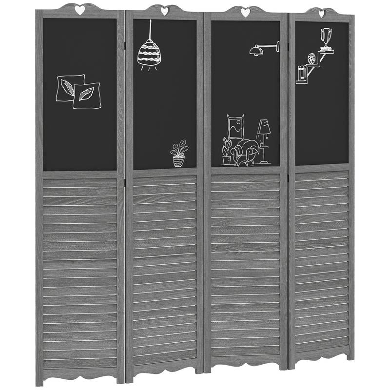 - Introducing our stylish gray wood room divider, a versatile solution for enhancing privacy and redefining your space. Measuring 63.75 inches wide and 67.75 inches high, this 4-panel divider effortlessly segments large areas or creates cozy, intimate corners.