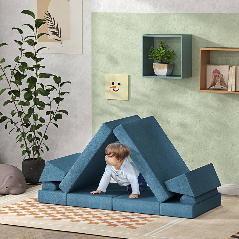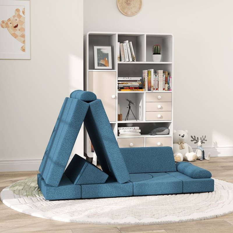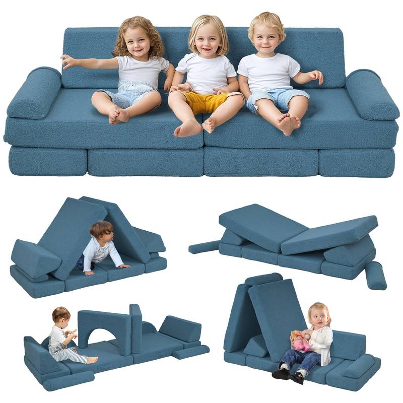- Introducing our versatile toddler play couch in vibrant blue! This creative play set includes 12 pieces with four unique shapes, perfect for building everything from cars to castles, sparking imagination and enhancing motor skills.