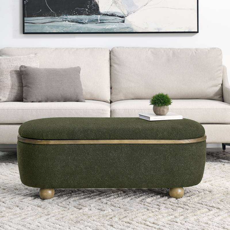 - Introducing the BUSAURUS long storage ottoman – the perfect blend of style and practicality. Measuring 43.31" x 15.75" x 17.52", this spacious ottoman is ideal for stowing away blankets, pillows, and toys, helping you keep your space tidy and clutter-free.