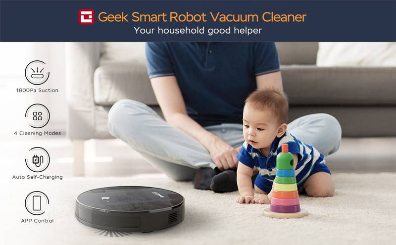 - - Smart App Control: Use the Geek Smart app to schedule cleanings, switch modes, and guide your vacuum—all from your phone.