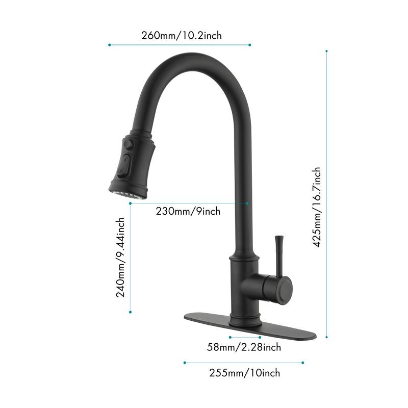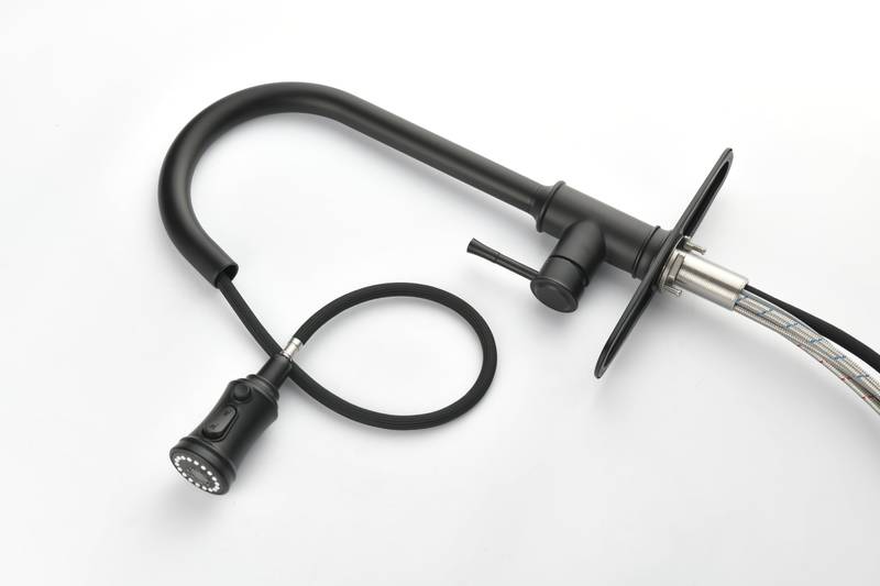 - Introducing our sleek Matt Black Stainless Steel Faucet, perfect for any kitchen! Its 360° rotating high-arc nozzle and pull-out spray head make it easy to reach every corner of your sink. Crafted with an anti-corrosion and anti-rust finish, it stays clean and looks great over time. Enjoy effortless temperature and flow control with a single handle. Plus, maintenance is a breeze—just wipe it down with a cloth. Upgrade your kitchen with this stylish and functional addition!
