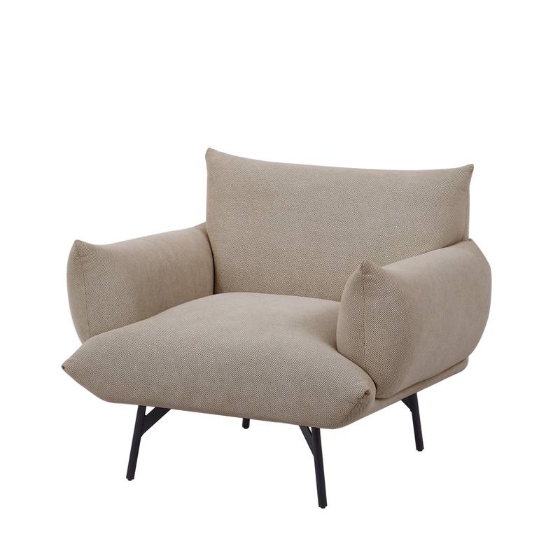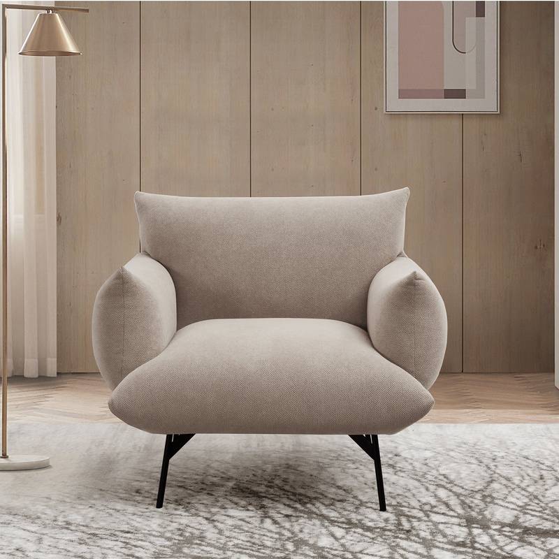 - Introducing our stylish oversized accent armchair, perfect for any living space. This 36-inch chair features a cozy flannelette fabric upholstery, complemented by sleek black metal legs for a modern touch. Its spacious design (35.82" L x 32.68" W x 30.31" H) offers ample comfort, making it an ideal addition to your living room, bedroom, or apartment. Lightweight yet durable, this chair is designed for both elegance and functionality, bringing a chic, mid-century modern vibe to your home. Upgrade your seating today!