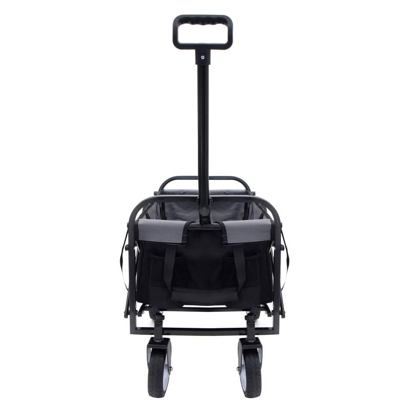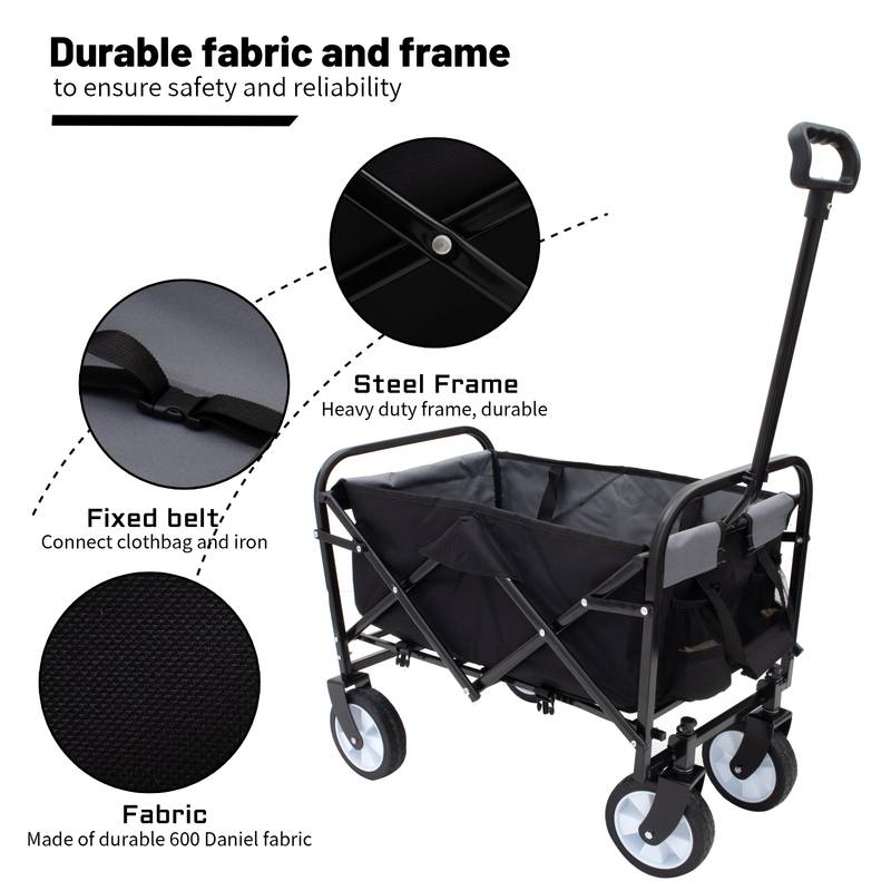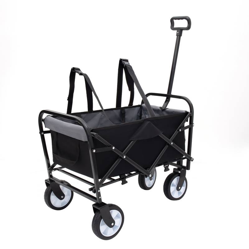 - Meet your new go-to utility cart, designed for versatility and style! Made from durable steel and featuring a sleek black finish, this collapsible wagon is perfect for gardening, beach trips, or hauling tools.